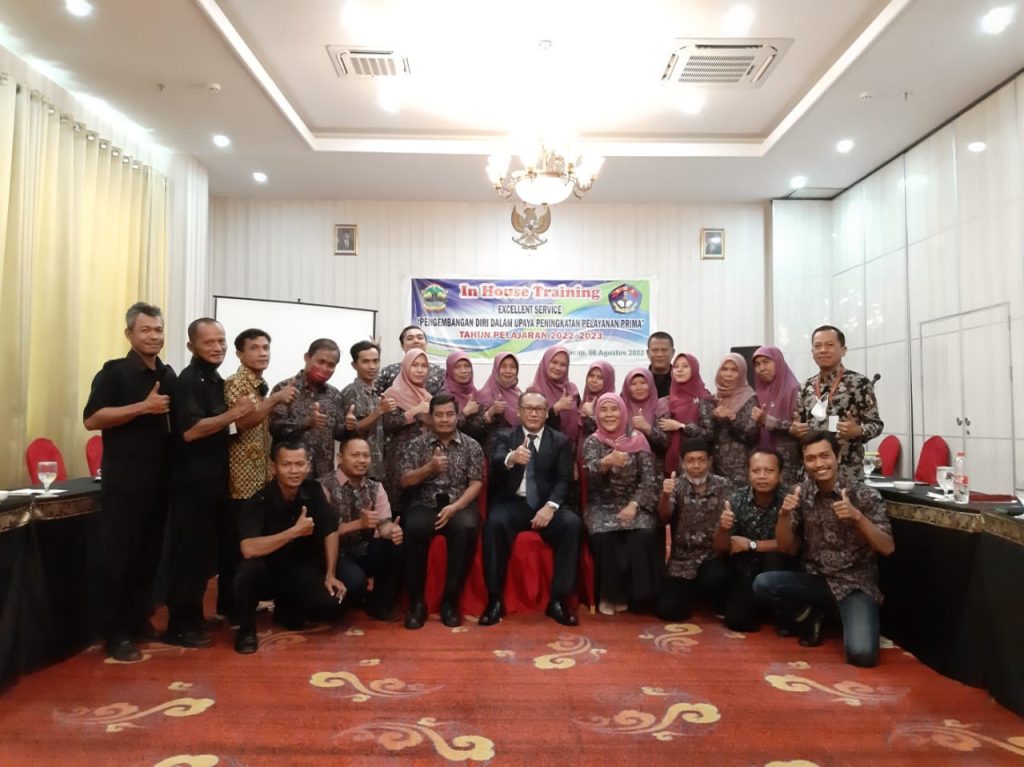 In House Training “Excellent Service” bagi Karyawan SMA N 2 Cilacap Di Hotel Sindoro Cilacap Sabtu, 6 Agustus 2022 Dengan diselingi permainan outbound dari Ndeso Outbound Foundation – NOF